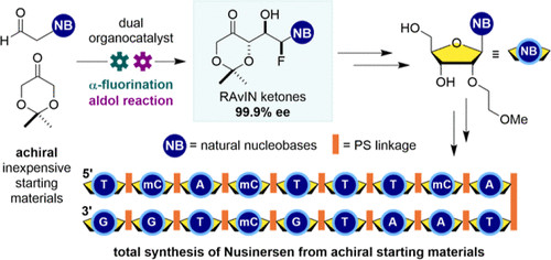 119: Matthew Nodwell, Guillermo Caballero-García, Juan M. Mesa, Tommi Muilu, Darryl M. Wilson, Abhishek Arora, Alan J. Brooke, Bara Singgh, Mamta Gill, Huyen M. Tran, Steven M. Silverman, Louis-Charles Campeau, Masad J. Damha, Robert Britton. 'The RAvIN Platform: A Noncarbohydrate Platform for Oligonucleotide Synthesis' Journal of the American Chemical Society, 2026